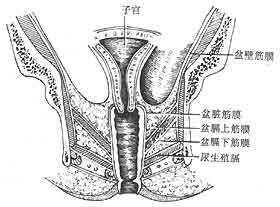 2、盆膈上筋膜 覆蓋于肛提肌與尾骨肌上面的部分,稱盆膈上筋膜superior fascia of pelvic diaphragm,為盆壁筋膜的向下延續(xù),盆膈上筋膜并向盆內臟器周圍移行為盆臟尾骨肌下面,為臀筋膜向會陰的直接延續(xù)。