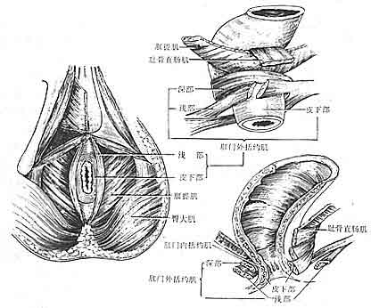 1)皮下部:位于肛管下端皮下,肌束呈環(huán)形,前方附著于會陰中心腱,后方附著于肛門下端皮下肛尾韌帶。手術(shù)損傷或需要切斷此部時,不致引起大便失禁。
