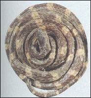 【藥材的采收與儲藏】:①五步蛇:多于夏季捕捉,一般用長竹竿和鐵絲做成套索捕取。捕得后,剖腹除去內(nèi)臟,盤成圓形,用竹片撐開后焙干,或不用竹片撐開,直接焙干。商品統(tǒng)稱為“大白花蛇”。撐開焙干者又稱為“蘄蛇鲞”;直接焙干者稱為“蘄蛇棍”。②銀環(huán)蛇 于夏季捕捉幼蛇,剖腹除去內(nèi)臟,盤成圓形,用竹簽撐開后焙干。商品稱為“金錢白花蛇”。